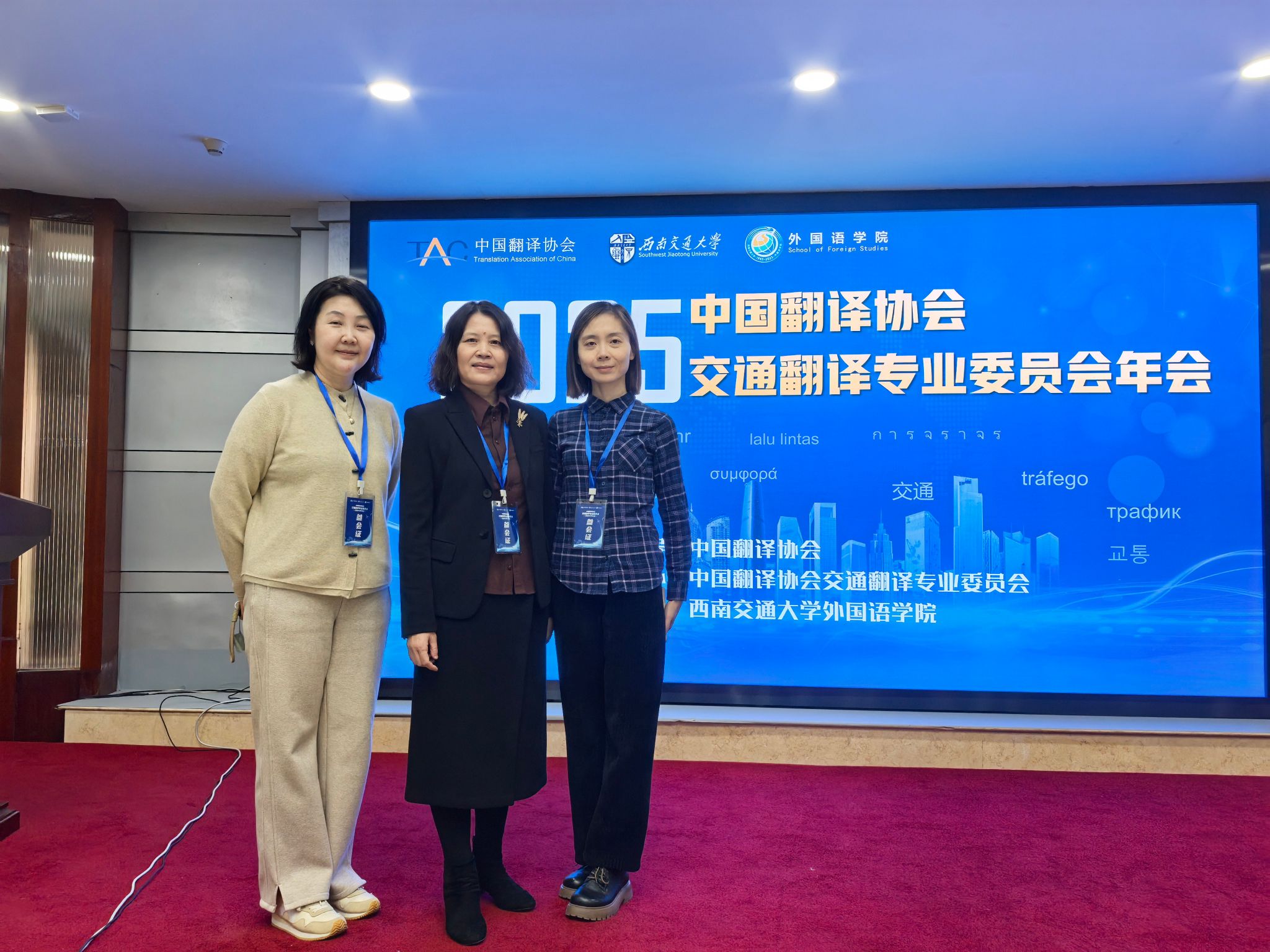本网讯 外国语学院报道 12月27日,由中国翻译协会指导,中国翻译协会交通翻译专业委员会主办,西南交通大学外国语学院承办的中国翻译协会交通翻译专业委员会2025年年会在成都成功举办。来自省内外的外语界专家学者和企业代表齐聚一堂,共襄学术盛典。作为中国翻译协会交通翻译专业委员会副主任委员单位,外国语学院郑丽院长、申卫华副院长和陈华妮副院长受邀参与此次会议。
